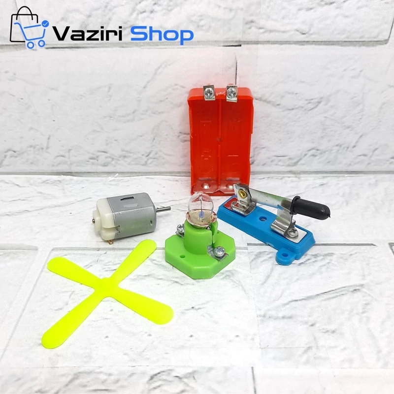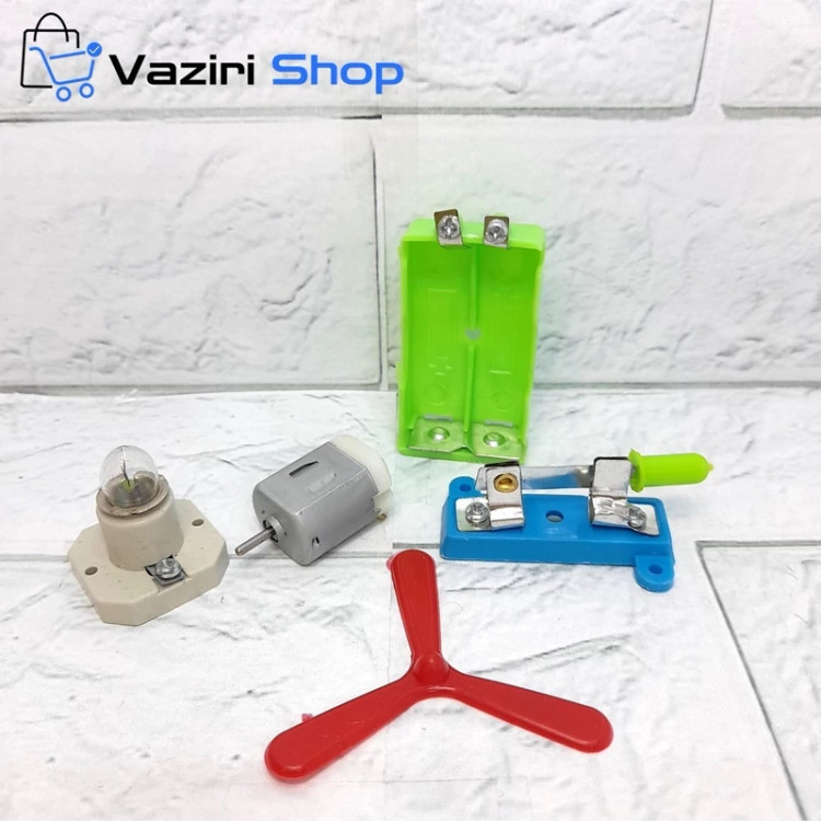 قطعات داخل بسته : آرمیچر - لامپ و پاتروم - کلید بین راهی - جا باتری - پره پنکه